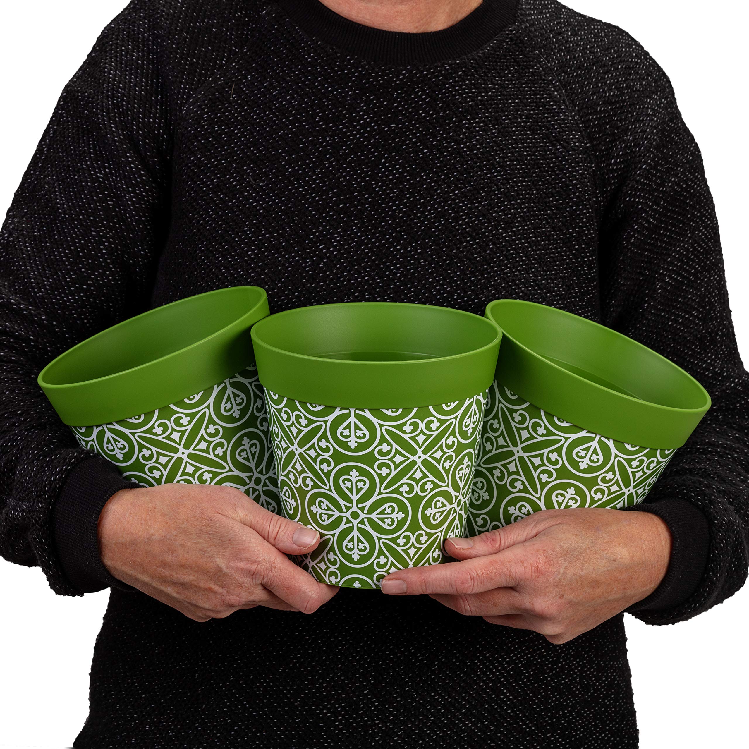 Hum Flowerpots 15 Cm Set Of 3 In Various Colours And Patterns Plastic Plant Pots For Indoor And Outdoor Use Green Moroccan Amazon De Garden